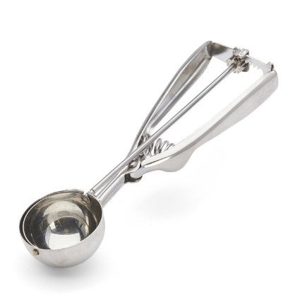 Teräksinen taikinakauha joka toimii loistavasti myös keksitaikinoiden ja jäätelön sekä muiden raaka-aineiden annosteluun.