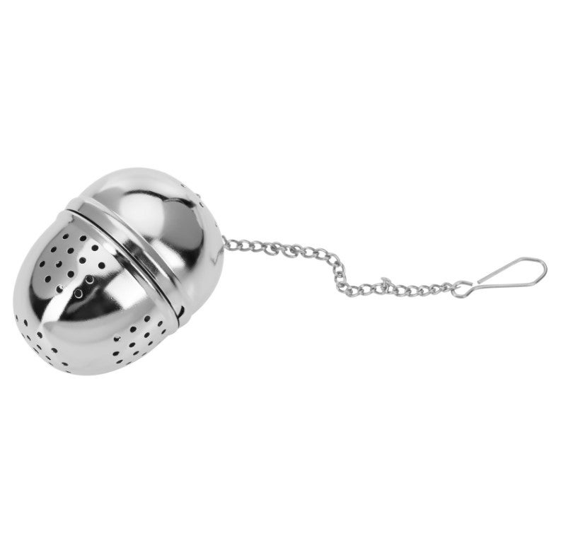 Ruostumattomasta teräksestä valmistettu teepallo, joka sopii esimerkiksi teen tai yrttien hauduttamiseen.