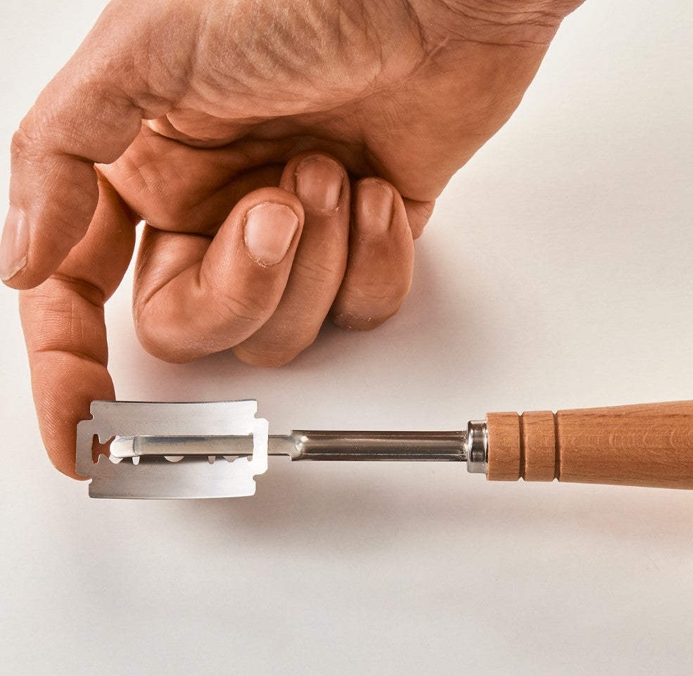 Pyökkipuusta valmistettu kahva, ergonomisesti muotoiltu. Leipurinterän mukana tulee säilytyskotelo ja viisi vaihtoterää. Pituus 19 cm. Huom. leipurinterään voi ostaa tavallisia partateriä vaihtoteriksi! Zassenhausin puukahvainen leipurinterä tekee leivän pintaan täydelliset viillot.
