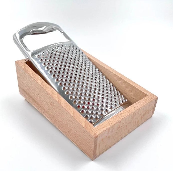 Kätevä raastin esim. kovalle juustolle, suklaalle, pähkinöille yms.