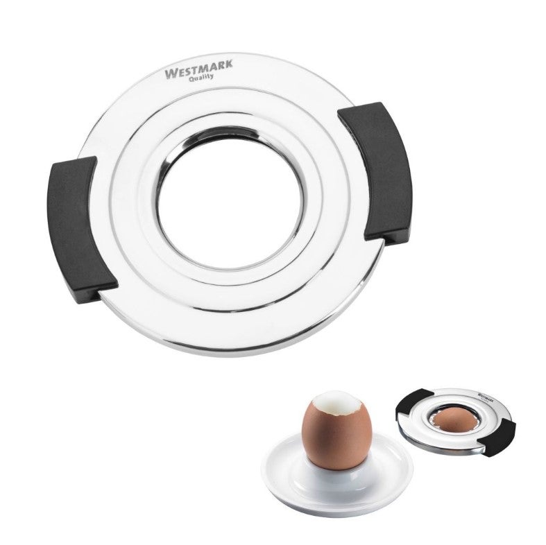 Ruostumattomasta teräksestä valmistettu kananmunan hattuleikkuri joka poistaa vaivattomasti kananmunan hatun silmänräpäyksessä.