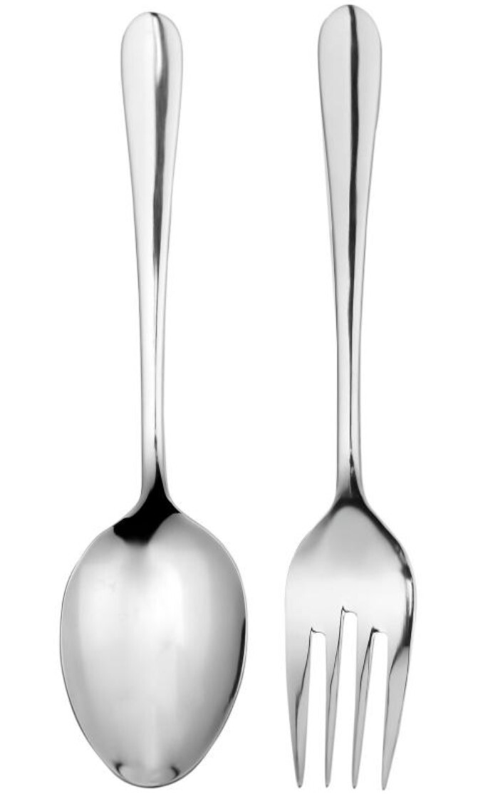 Ruostumattomasta teräksestä valmistetut tarjoiluottimet, pakkauksessa yksi haarukka ja yksi lusikka